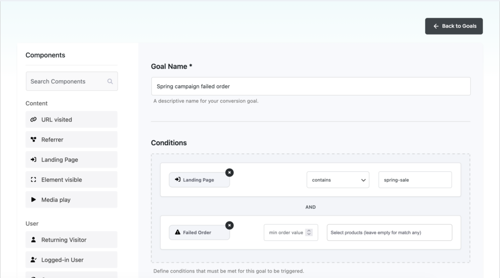 • Advanced goals and retrospective goals – Track real business outcomes and apply new goal definitions to historical data without losing past insights.