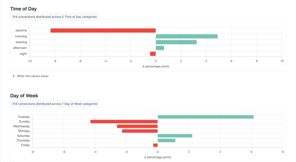 If the data reveals that Tuesdays outperform and Wednesdays underperform, it makes sense to shift campaign budgets accordingly. Even if you do not fully understand the underlying reason, acting on statistically visible deviation is often more rational than sticking to assumptions.